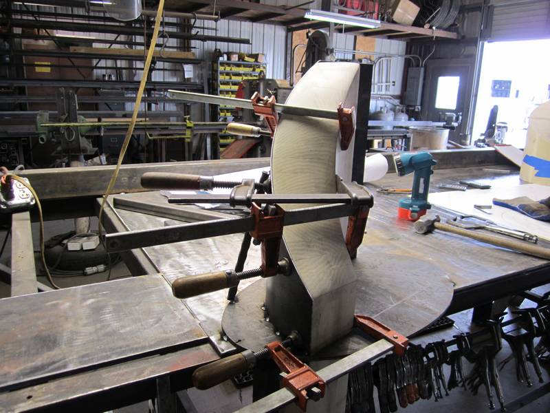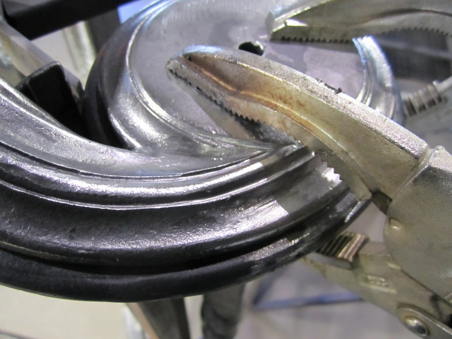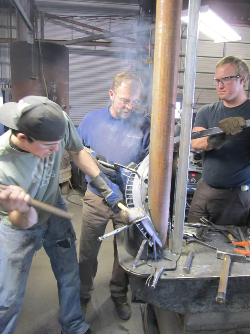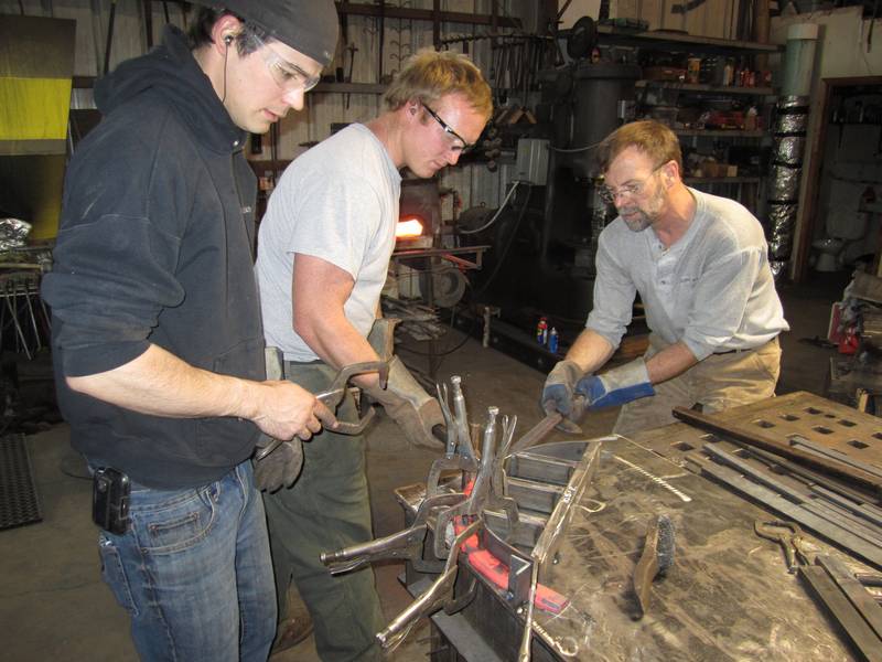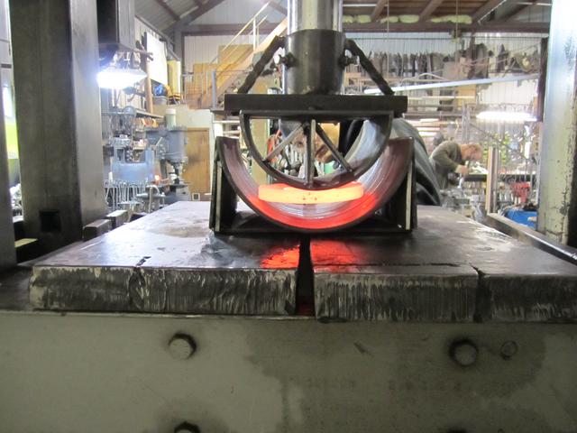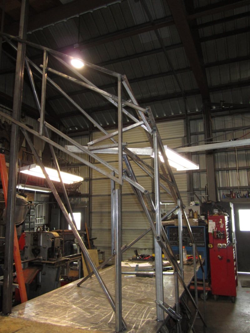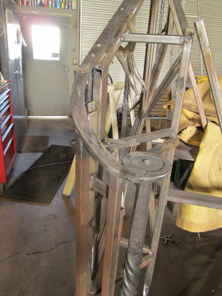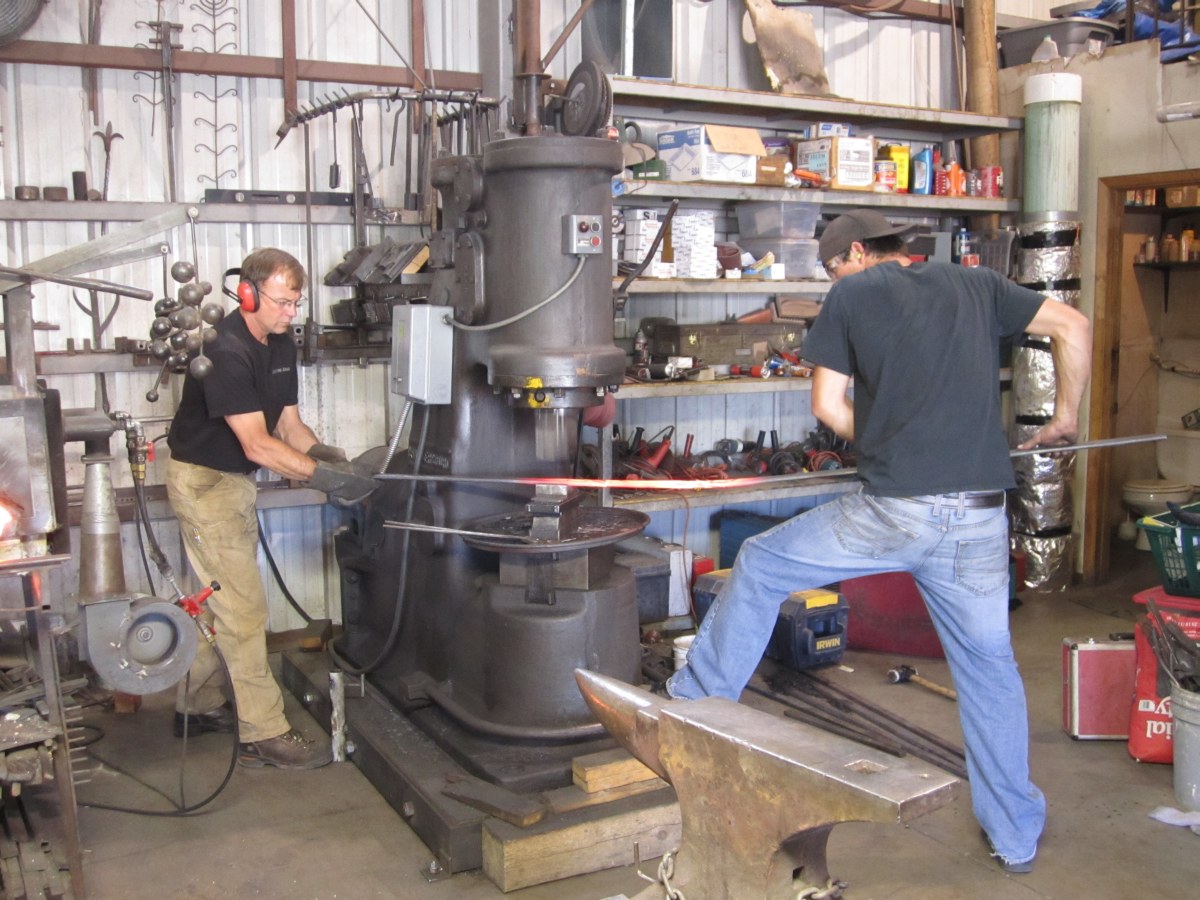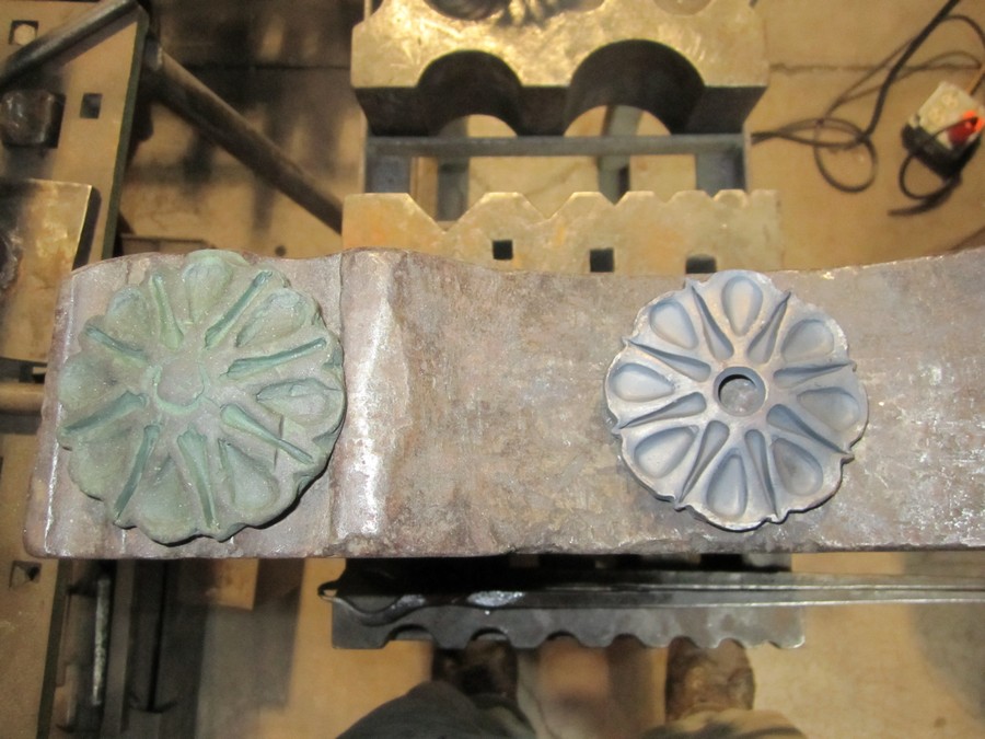 The woodworker provided the wood stringer form so that we could make a steel form to forge the top and bottom rails. This allowed us to hot bend the iron to lie perfectly on top of the stringer.